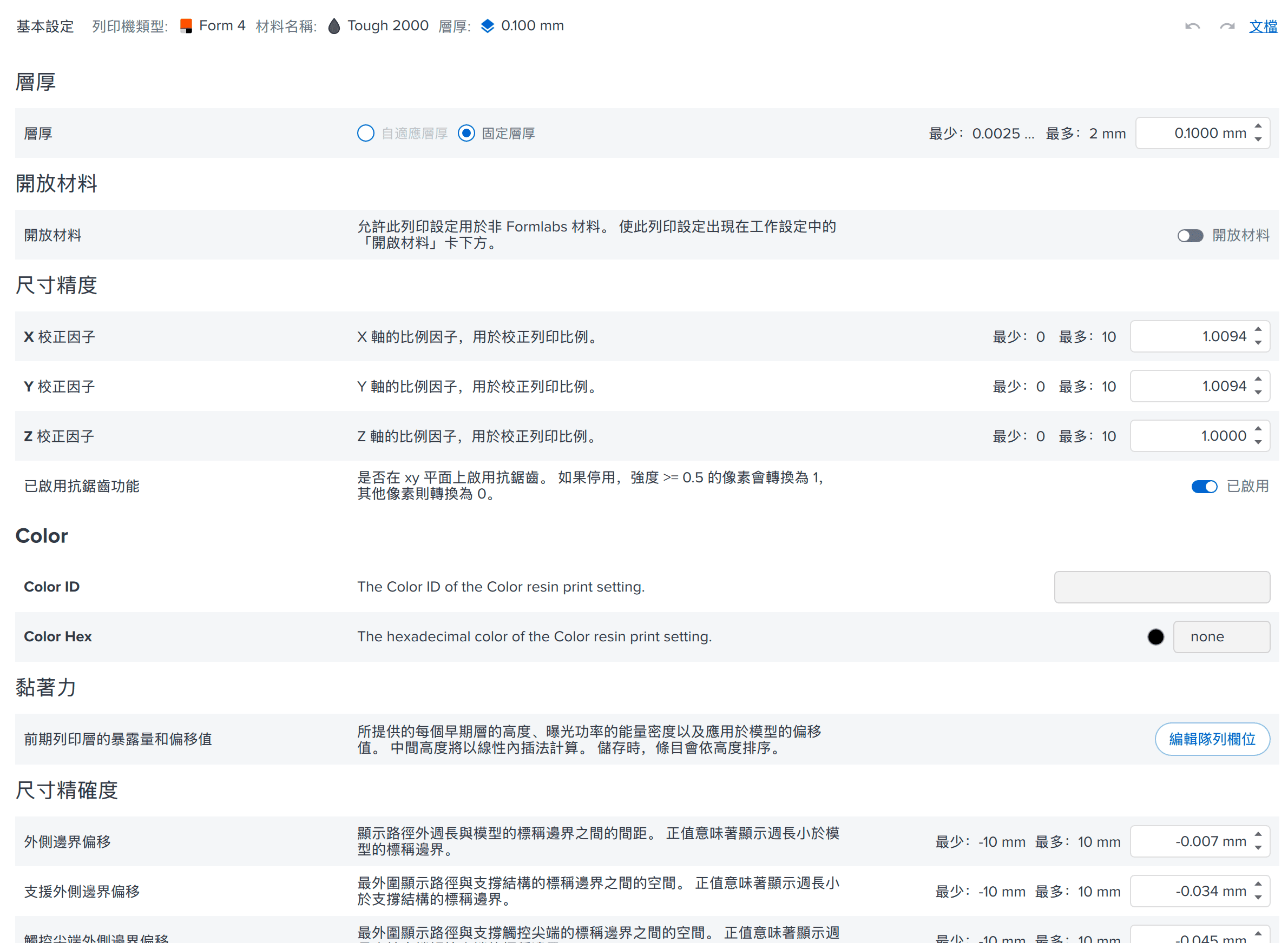 可自訂列印參數驗證自研材料